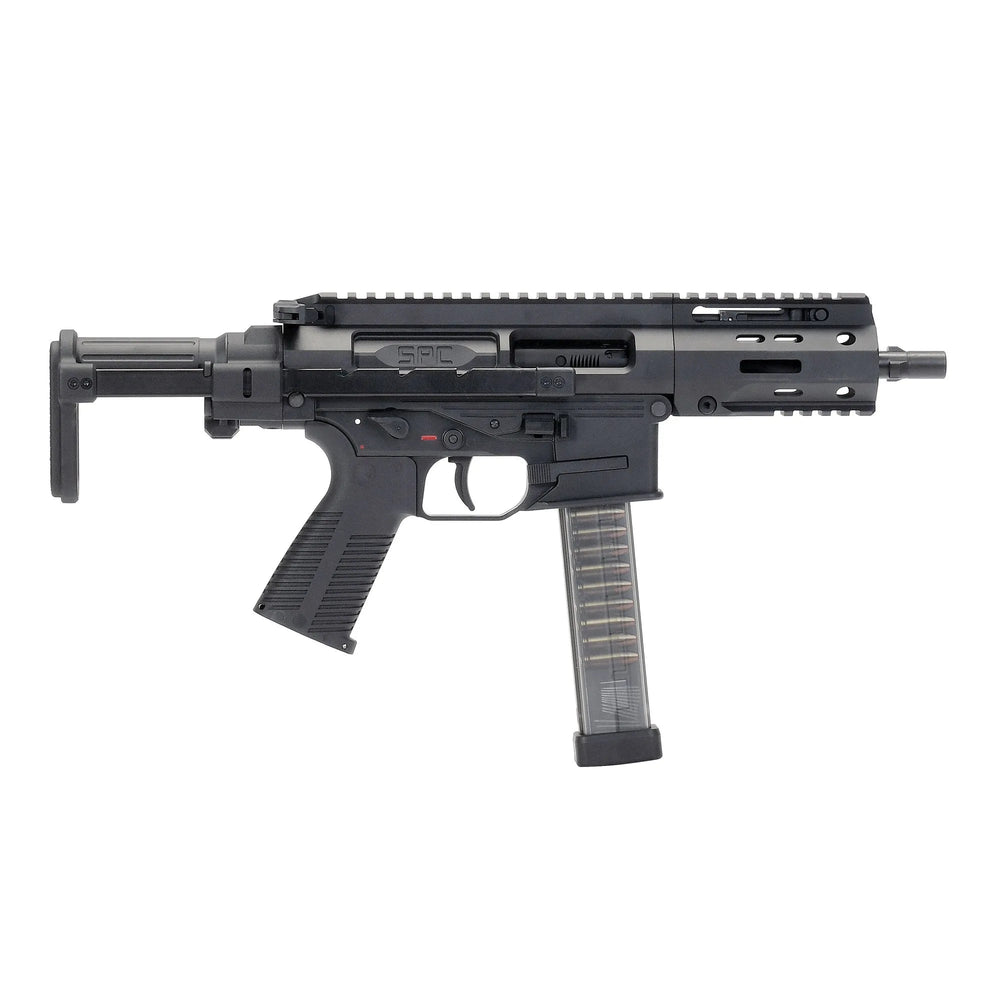 The MARUYAMA SPC-9 Pro PDW features several selectable firing modes: semi-automatic, full-automatic, and safety. This selection allows users to adapt their firing style to different play styles or tactical requirements. The versatile firing modes add value for both beginners and experienced airsoft professionals.