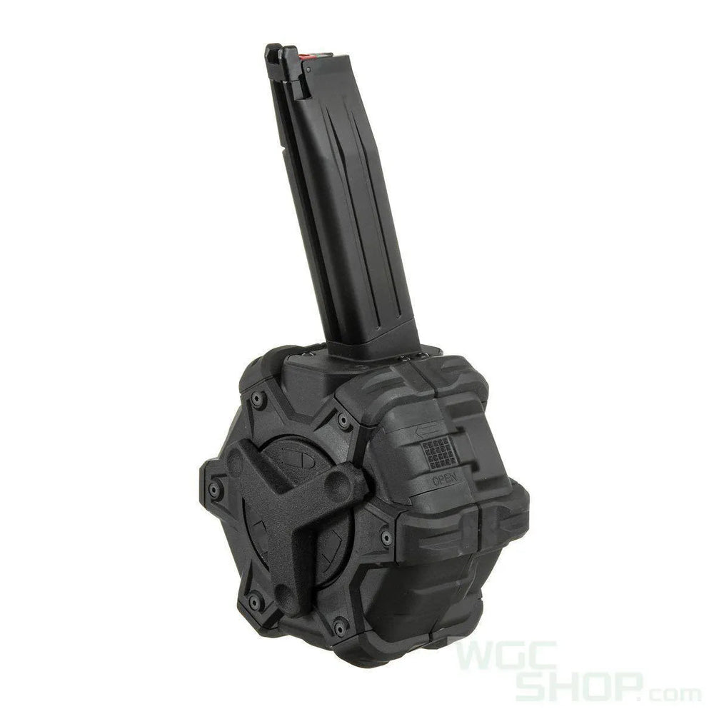 - 350 rds high capacity manual winding drum magazine