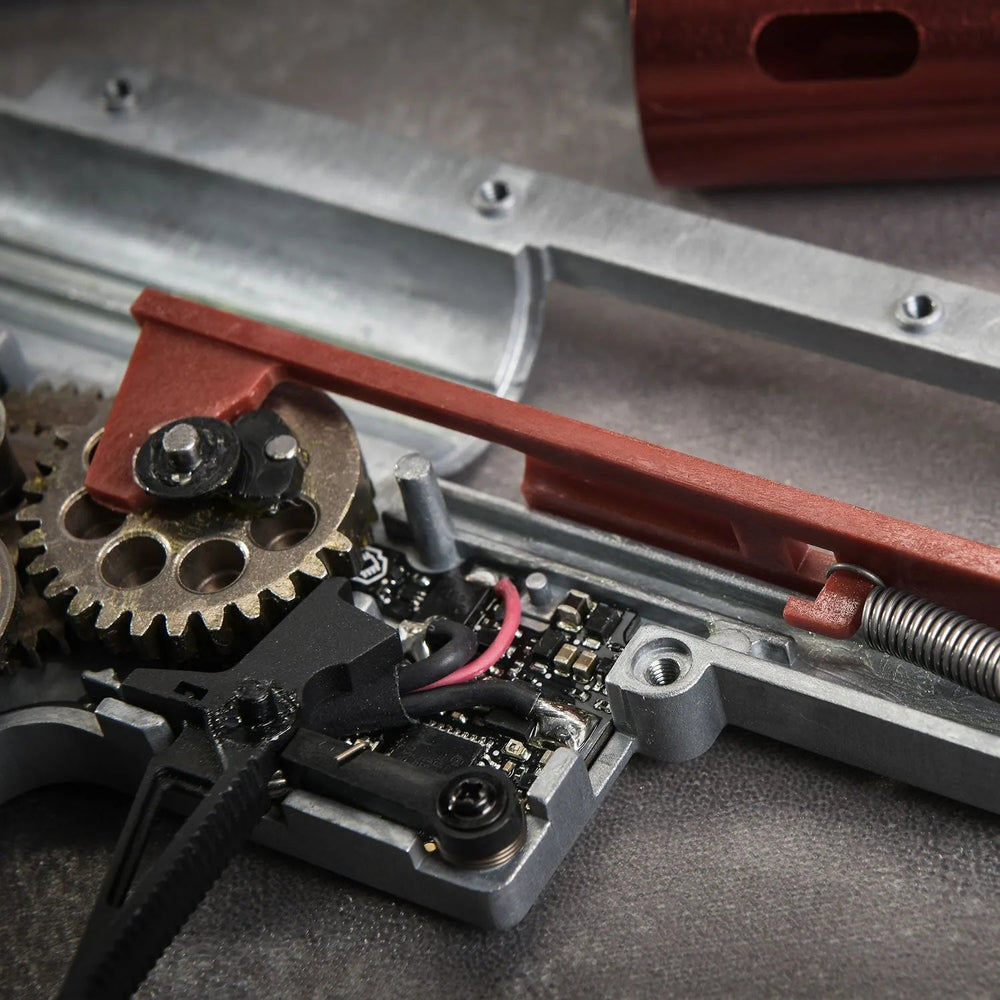 The TR-1 Ultralight also comes with upgraded features. It includes a BCM Gunfighter Mod 1 collapsible stock to provide more battery space. Inside, it’s equipped with a GATE ASTER electronic trigger system and VFC’s highly praised Ver.2.1 ECS gearbox. The wire routing in the buffer tube has been redesigned for improved functionality, blending sleek design with excellent performance.
